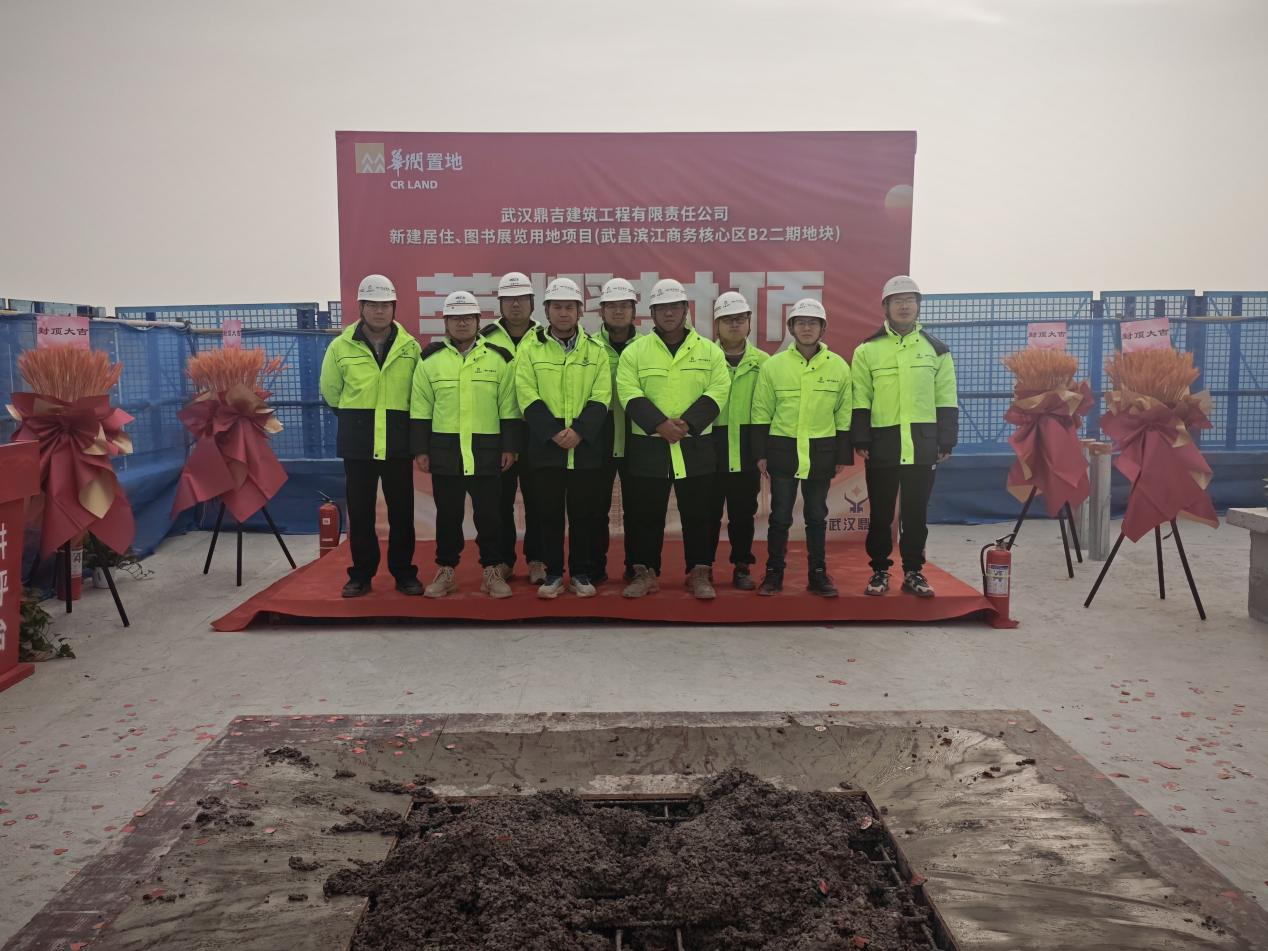 2025年12月30日,在長江中心這片城市發展的活力核心區域,武漢長江中心B2-2項目R8#住宅樓主體結構順利封頂,現場舉行了莊重而熱烈的“喜封金鼎”儀式,參建各方代表共同見證了金鼎澆筑的重要時刻。